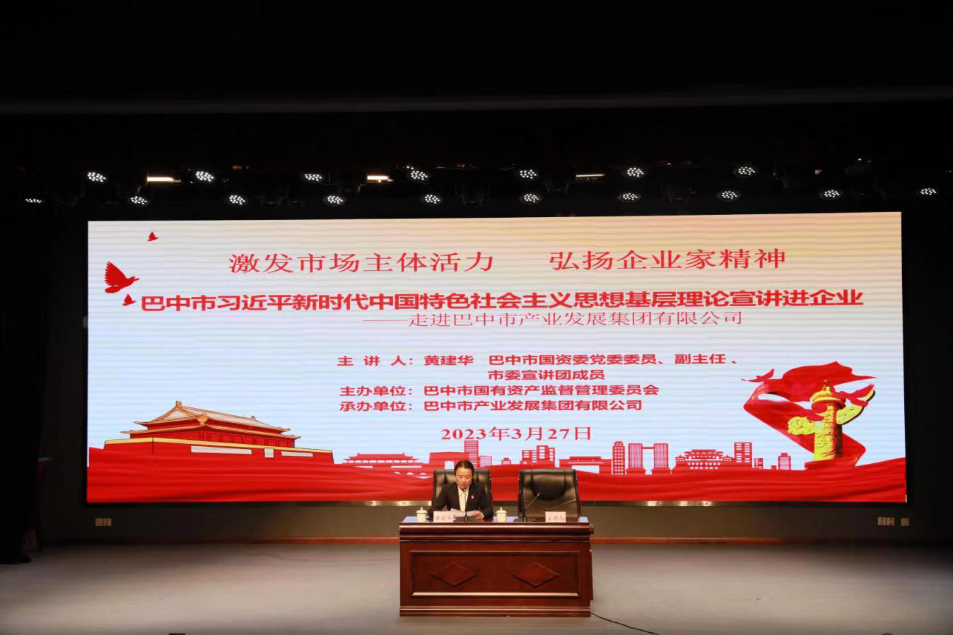 2023年3月27日,巴中市國資委以“激發(fā)市場主體活力 弘揚企業(yè)家精神”為主題,開展習近平新時代中國特色社會主義思想基層理論宣講進企業(yè)活動,市國資委黨委委員、副主任黃建華深入市產(chǎn)業(yè)集團二級企業(yè)自然資源集團,為全體干部職工作黨的二十大精神宣講報告,市產(chǎn)業(yè)集團領導班子、自然資源集團全體員工聆聽宣講。